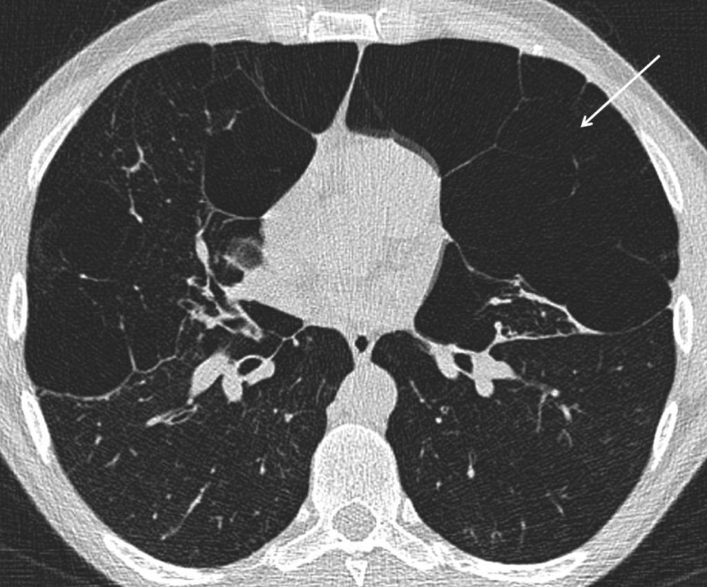 - Les lésions d’emphysème sont pratiquement pathognomoniques de la BPCO.